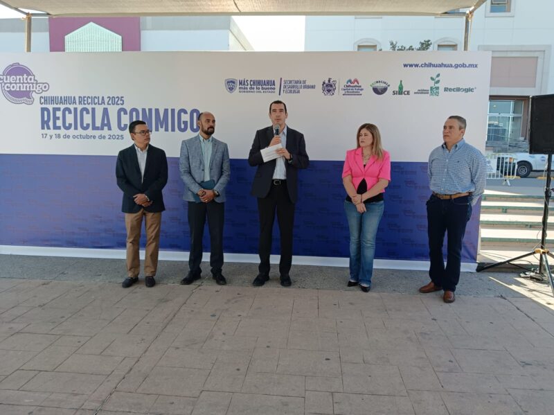 En el evento de arranque de Chihuahua Recicla, en su edición 2025, recicla conmigo, se hizo la invitación a toda la ciudadanía a ser parte del mismo, el cual, tiene como fin el reunir basura electrónica, cartón, PET, papel y vidrio.