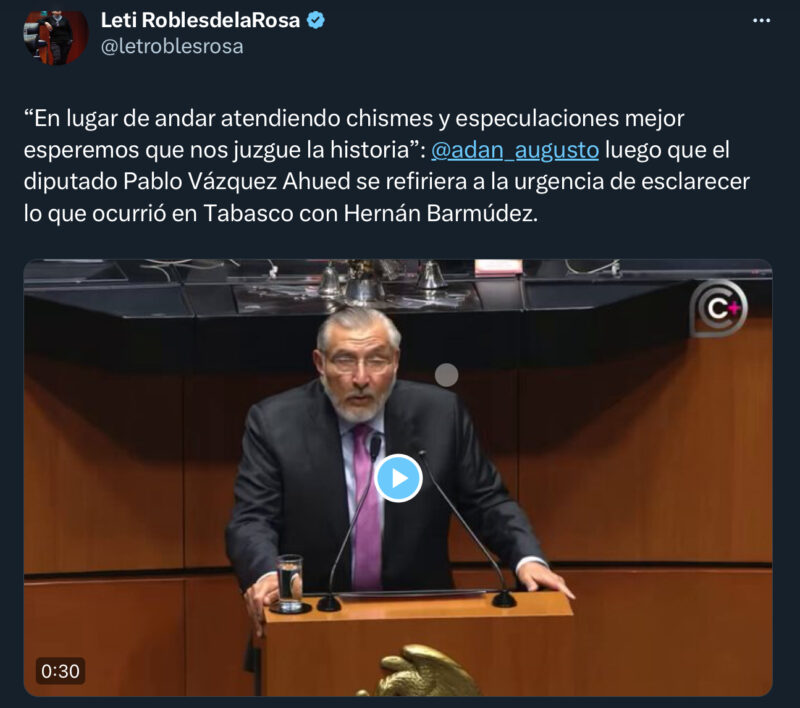 “Mienten con contumacia. No inició Bermúdez conmigo. Yo lo nombré en un momento de crisis de seguridad, en diciembre de 2029. Nunca, en mi ejercicio de gobierno, tuve algún indicio o sospecha sobre él. No me da vergüenza decirlo”, expresó el legislador desde la tribuna.