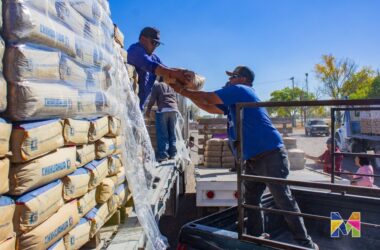 Benefician a 42 familias de Guadalupe Victoria en Meoqui con cemento subsidiado