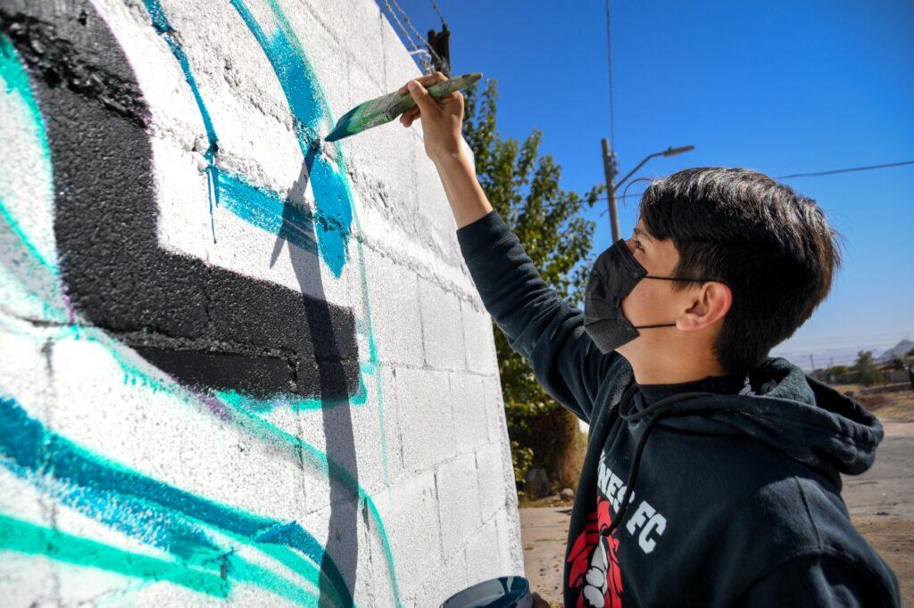 En colaboración con los vecinos de la colonia Insurgentes II, dentro de los primeros 100 días de trabajo y resultados, el Gobierno Municipal a través del Instituto de Cultura del Municipio (ICM), dio inicio al programa “Muralismo Comunitario”, con la pinta de seis bardas localizadas en las inmediaciones del arroyo El Mimbre, frente al Centro Comunitario DIF Municipal Insurgentes.