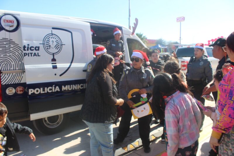 Chihuahua, Chih. A 25 de diciembre de 2024.- Policías de los grupos especiales canino K9 y de la subdirección de Inteligencia de la Dirección de Seguridad Pública Municipal, llevaron felicidad a docenas de niñas, niños y adultos que, en víspera de Navidad.