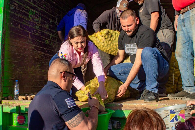 La alcaldesa de Meoqui y regidores entregaron papa, frijol y huevo orgánico subsidiado en el Parque de la Amistad, continúan apoyos