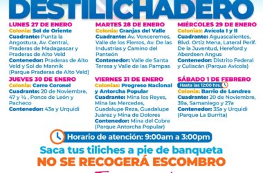 Aprovecha, el Destilichadero estará en ocho colonias del 27 de enero al 1 de febrero