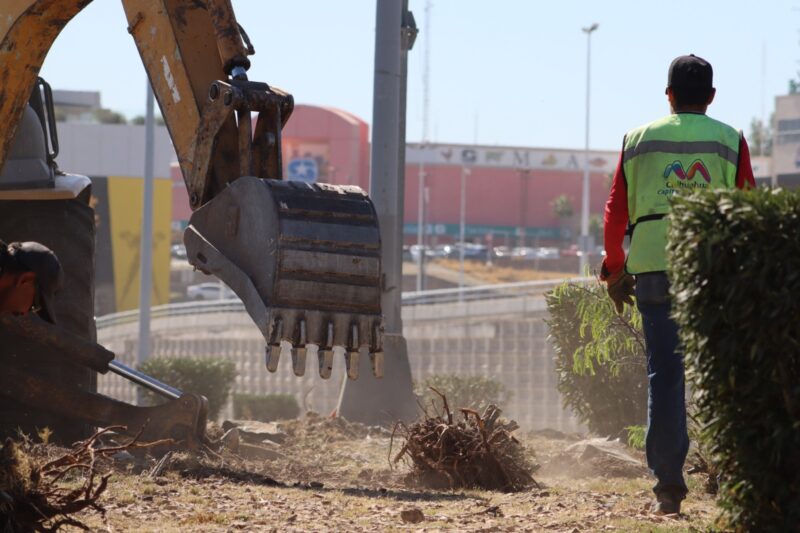 Durante el operativo se atendieron más de 14 kilómetros de camellones centrales y laterales, desde la Ortiz Mena hasta el Circuito Universitario, donde las cuadrillas realizaron limpieza general, corte de maleza, así como el retiro de arbolado y arbustos secos en distintos puntos.