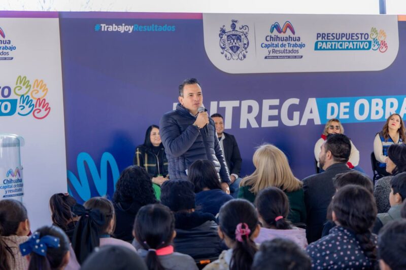 H. Ciudad de Chihuahua, Chih., a 15 de enero de 2026.- El alcalde Marco Bonilla, inauguró un domo en la primaria «Sor Juana Inés de la Cruz» en la colonia Vistas Cerro Grande, uno de los proyectos ganadores del Presupuesto Participativo en la edición 2025, trabajos que tuvieron una inversión de más de 4 millones de pesos para dotar a los estudiantes un espacio libre de las inclemencias del clima.
