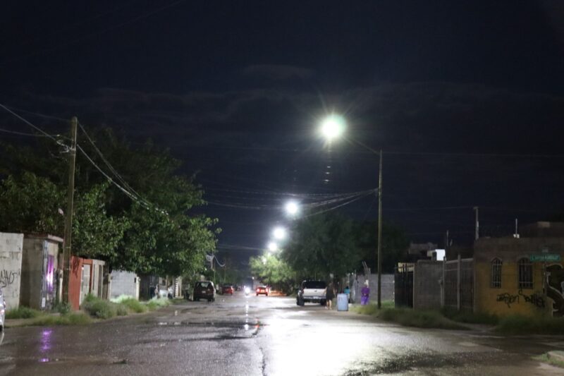 H. Ciudad de Chihuahua, Chih., a 7 de agosto de 2025.- El Gobierno Municipal, a través de la Dirección de Mantenimiento Urbano, concluyó la renovación de luminarias de vapor de sodio a luz LED en las colonias Rinconadas Sierra Azul y Praderas del Sur, beneficiando a más de los 12 mil 700 habitantes de esos sectores.