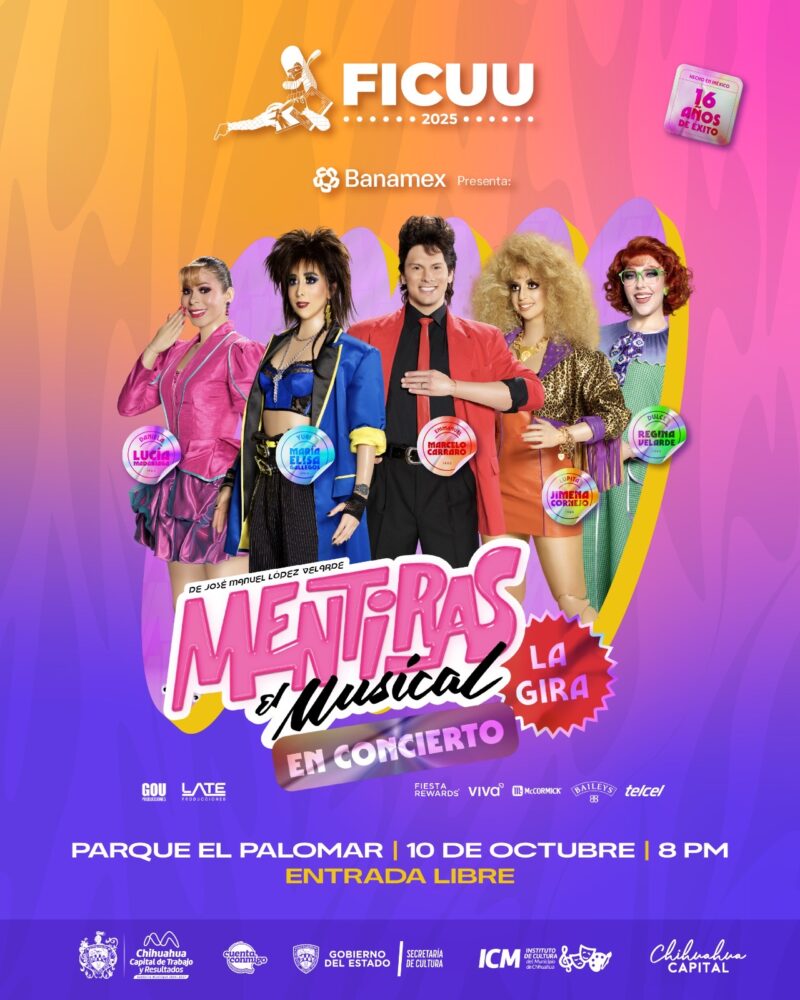 H. Ciudad de Chihuahua, Chih., a 10 de octubre de 2025.- El Gobierno Municipal de Chihuahua, a través del Instituto de Cultura, invita a toda la ciudadanía a disfrutar esta noche del espectáculo “Mentiras, el Musical en Concierto”, como parte de la programación del Festival Internacional de la Ciudad de Chihuahua (FICUU 2025).