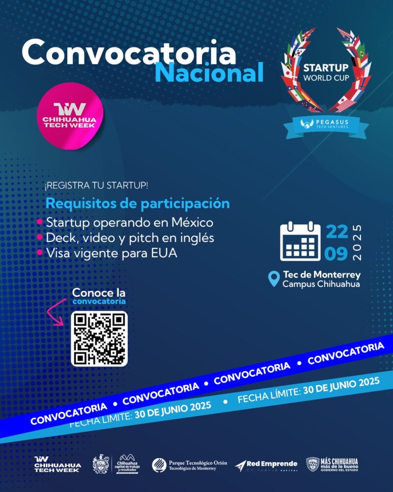 H. Ciudad de Chihuahua, Chih. A 18 de junio de 2025.- El Gobierno Municipal y Red Emprende Chihuahua Capital, anunciaron la convocatoria para la “Startup World Cup México – Final Regional México 2025”, que se celebrará este 22 de septiembre a las 15:00 horas, en el Auditorio MENLO del PIT2 del Tecnológico de Monterrey Campus Chihuahua ubicado en la avenida Heroico Colegio Militar número 3700.
