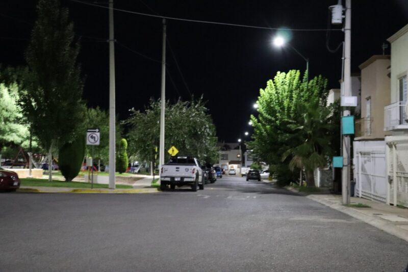 H. Ciudad de Chihuahua, Chih., a 5 de septiembre de 2025.- El Gobierno Municipal, a través de la Dirección de Mantenimiento Urbano, concluyó la modernización del alumbrado público en el sector Las Aldabas en sus ocho etapas, beneficiando a más de 3 mil habitantes de la zona.
