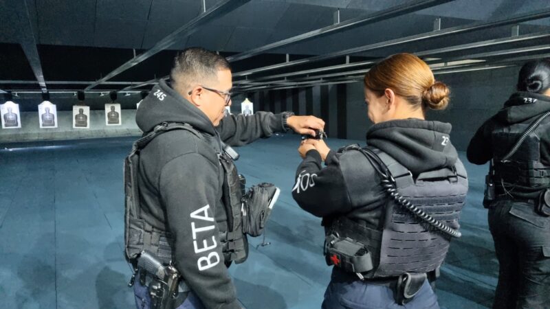 La policía de academia Iveth Amaro, quien forma parte del Grupo Beta, el grupo ciclista que patrulla el primer cuadro de la ciudad, afirma que reforzar conocimientos en el manejo de armas en ese tipo de instalaciones sirven para mejorar la atención a la comunidad.