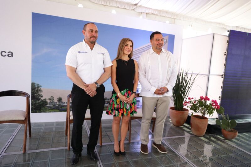 Previo a la colocación de la primera piedra, se realizó una plática entre la fundadora de la torre médica, Michele Betancour; Cintia Villarreal, especialista en oncología y asesora ejecutiva del proyecto; y Humberto Mendoza, encargado de la construcción del edificio.