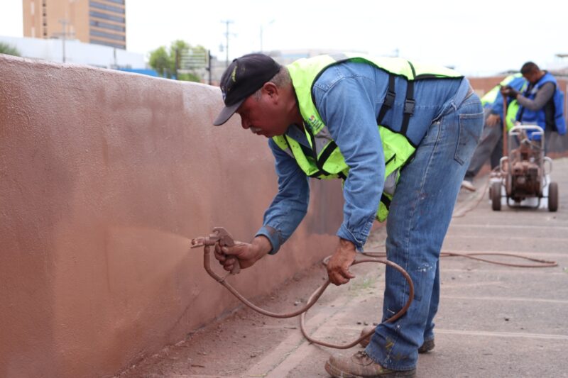 H. Ciudad de Chihuahua, Chih. A 3 de octubre de 2025.- El Gobierno Municipal, a través de la Dirección de Mantenimiento Urbano, finalizó con los trabajos de pintura en el muro de contención de la avenida Teófilo Borunda lado norte, para mejorar la imagen urbana de Chihuahua Capital.