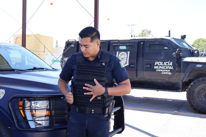 H. Ciudad de Chihuahua, Chih., 27 de julio de 2025.- Además de darles la seguridad necesaria en el desempeño de sus funciones, agentes de la Policía Municipal consideran que los nuevos chalecos balísticos recientemente entregados por el Gobierno Municipal, a través de la Dirección de Seguridad Pública Municipal (DSPM) permiten mayor comodidad y son de mayor resistencia debido a los materiales de que están elaborados.