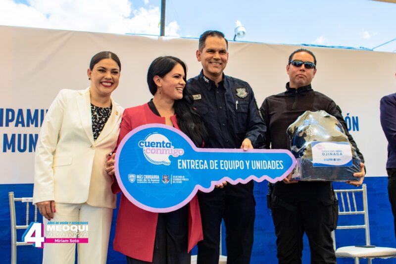 Uno de los eventos más destacados fue la entrega de unidades y equipamiento a más de 20 Direcciones de Seguridad Pública Municipal del Estado, con una inversión cercana a los 60 MDP, acto encabezado por el secretario de Seguridad Pública, Gilberto Loya, la alcaldesa Miriam Soto y el comandante Víctor Manuel Orona Holguín. Durante este evento, Meoqui recibió 3 nuevas unidades, así como equipamiento táctico y operativo, entre ellos 264 pares de botas, 210 pantalones, 210 camisolas, 105 cascos, 60 chalecos, 25 cámaras de solapa, 15 equipos anti motín, además de computadoras, linternas, fornituras y otros insumos para el trabajo diario de la corporación.