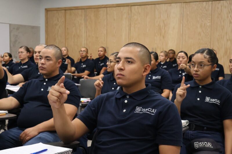 H. Ciudad de Chihuahua, Chih., a 20 de noviembre del 2025.- Con la finalidad de contar con una Policía Municipal preparada e incluyente, la nueva generación de cadetes que cursan academia en el Instituto Superior de Seguridad Chihuahua (ISSCUU), iniciaron una capacitación de lenguaje de señas para comunicarse y atender oportunamente situaciones de personas con discapacidad auditivita.