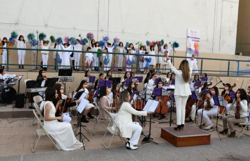 Dentro del marco de eventos conmemorativos al Día Internacional de la Eliminación de la Violencia contra la Mujer, el Modelo Educativo “Música en mi Escuela” del Centro de Estudios Musicales llevó a cabo un concierto con la participación especial de la Orquestrina Femenil.