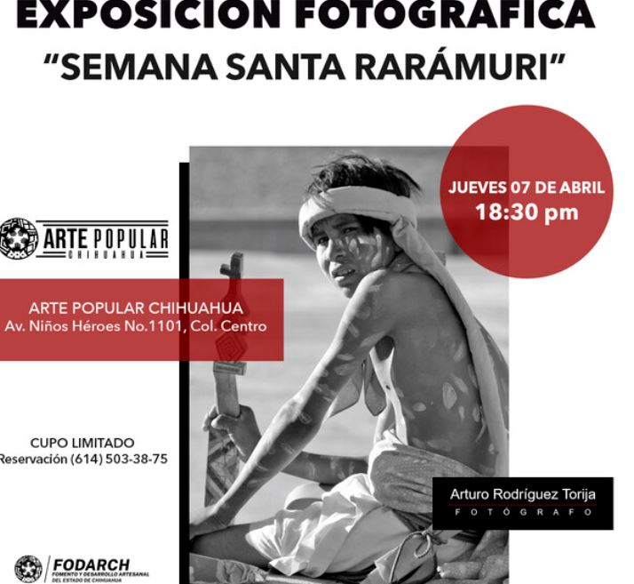 Con motivo de reanudar las actividades culturales en la ciudad, Fomento y Desarrollo Artesanal del Estado de Chihuahua (FODARCH) inaugurará la exposición fotográfica “Semana Santa Rarámuri”, en la cual se expondrá la obra del fotógrafo Arturo Rodríguez Torrija.