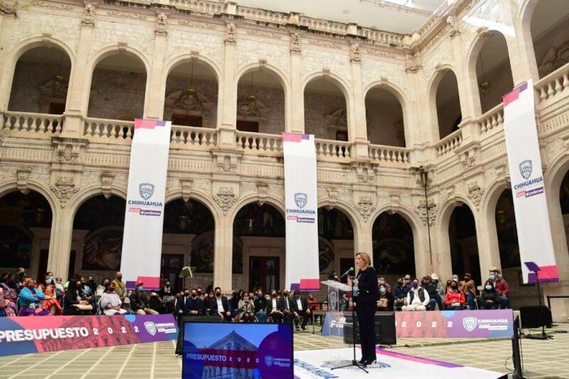 Desde Palacio de Gobierno en la capital del estado, la Gobernadora Maru Campos, presentó a la ciudadanía chihuahuense el presupuesto correspondiente al ejercicio del año 2022, con el que el Gobierno del Estado trabajará para convertir en resultados el bien de todas y todos los chihuahuenses.