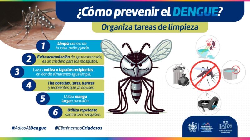 H. Ciudad de Chihuahua, Chih., a 15 de julio de 2025.- Durante la temporada de lluvias, aumentan los casos de enfermedades transmitidas por vectores como mosquitos, garrapatas o pulgas, por ello el Gobierno Municipal, a través del Instituto Municipal de Pensiones (IMPE), emite recomendaciones para prevenir enfermedades tales como dengue, zika o chikungunya.