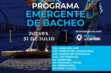 Programa de bacheo del Municipio estará este 31 de julio en estas zonas