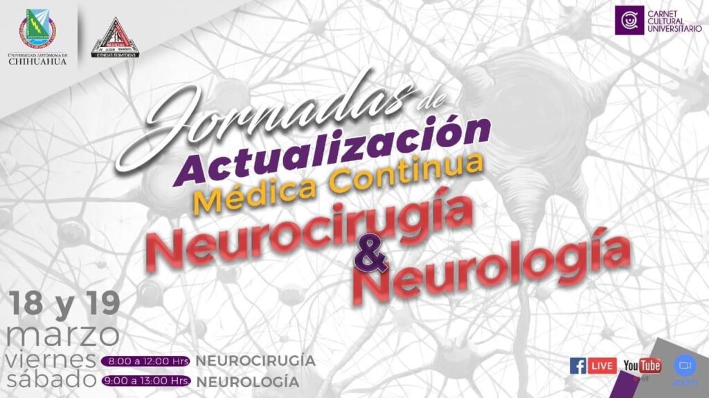 En esta ocasión, se tratarán temas de la Neurocirugía y Neurología de gran importancia, tanto para residentes de esta especialidad como a la comunidad médica en general, cabe señalar que se llevan a cabo en conjunto con el Colegio de Estatal de Neurología, en la que los especialistas tocarán puntos como el rescate cerebral, hemorragia subaracnoidea, hidrocefalia aguda y crónica, dolor de la columna vertebral y radicular y detección y tratamiento temprano de tumores, como EVC, demencia, migrañas, epilepsia y espectro de autismo, serán abordados en estas Jornadas de Actualización de la Facultad de Medicina y Ciencias Biomédicas, que de manera constante y permanente ofrece, tanto para sus egresados como a los estudiantes en general.