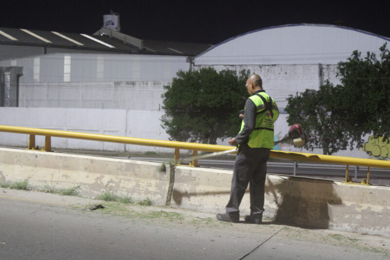 Personal de Servicios Públicos realizó limpieza, corte de hierba, papeleo y pepena en la parte alta de los puentes vehiculares, trabajos que se efectúan durante el turno nocturno para no afectar el tránsito de la zona.