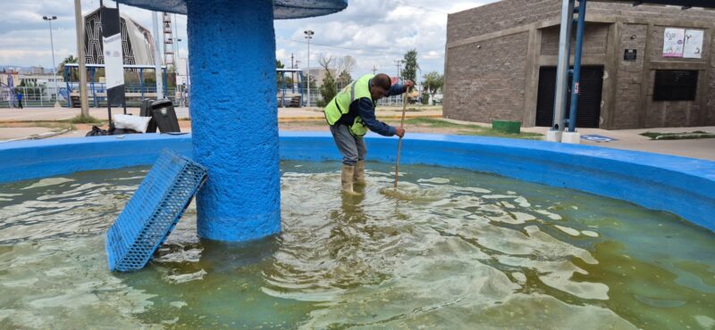 H. Ciudad de Chihuahua, Chih. A 19 de septiembre de 2025.- El Gobierno Municipal, a través de la Dirección de Mantenimiento Urbano, atiende de manera continua las 17 fuentes públicas de Chihuahua Capital, para conservar una buena imagen urbana en los espacios públicos de la ciudad para las familias chihuahuenses.