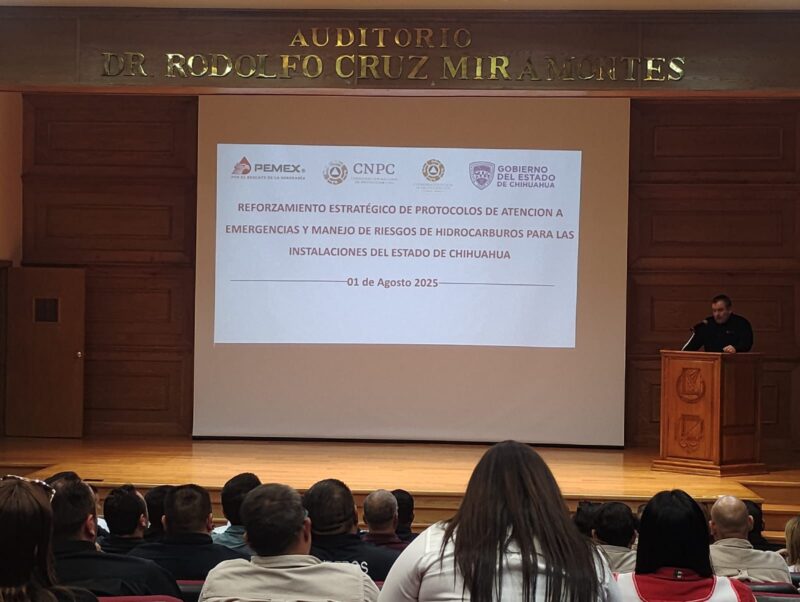 Atendiendo la indicación de la alcaldesa Miriam Soto de seguir fortaleciendo la preparación de la Dirección de Seguridad Pública, la coordinación de Protección Civil y Bomberos de Meoqui, recibió una capacitación por parte de personal de PEMEX acerca del Riesgo de Manejo de Hidrocarburos, en cual se vieron protocolos de seguridad ante derrames de combustible, esto atendiendo la invitación por parte de la Coordinación Estatal de Protección Civil.