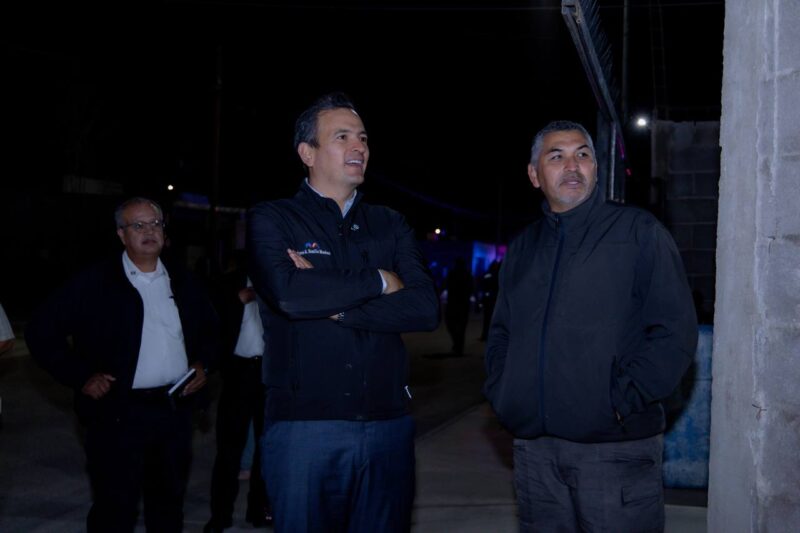 H. Ciudad de Chihuahua, Chih., a 24 de noviembre de 2025.- El alcalde de Chihuahua, Marco Bonilla, supervisó la reconversión de alumbrado público antiguo a luz LED, en la colonia Punta Naranjos, lo cual ha dotado a las familias del sector de una iluminación blanca más potente, que consume menos energía, brinda más seguridad y modernidad a la zona.