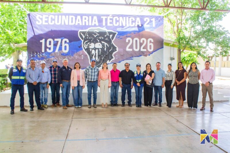 La alcaldesa de Meoqui, Miriam Soto, encabezó un recorrido por la Secundaria Técnica No. 21, ubicada en el seccional de Lázaro Cárdenas, acompañada por el secretario de Educación y Deporte del Gobierno del Estado, Hugo Gutiérrez; el director general del ICHIFE, Iván Ortega; y la directora general de Servicios Educativos, Teresa López, con el objetivo de supervisar la infraestructura escolar y conocer las actividades académicas que se desarrollan en la institución.