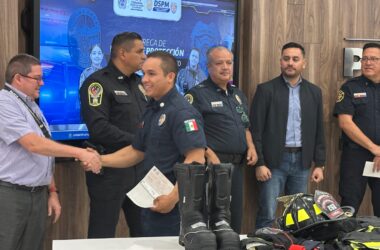 Entrega DSPM equipos de protección a Bomberos  y reciben incentivo junto con policías