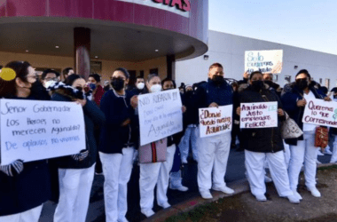 Con aguinaldo recortado y sin bono COVID: personal de salud protesta en Coahuila