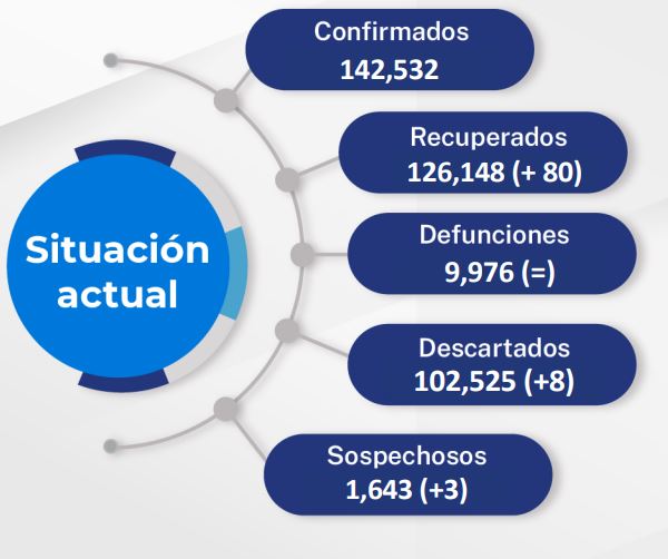 Este martes no se registran defunciones, por lo que la cifra de las personas que han perdido la vida COVID-19 permanece en 9 mil 976.