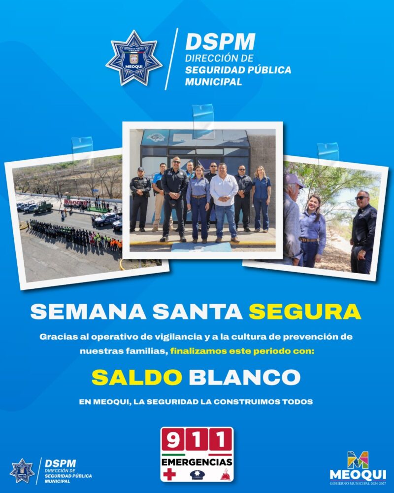 El municipio de Meoqui registró saldo blanco durante el periodo vacacional de Semana Santa, resultado del Operativo “Semana Santa Blanca”, implementado con el objetivo de salvaguardar la integridad de las y los meoquenses, así como de los visitantes.