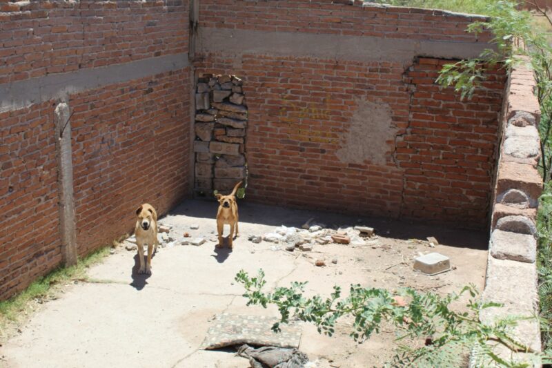 En seguimiento al protocolo de actuación, la Brigada de Rescate Animal acudió al lugar y localizó a los dos perros sin alimento, agua ni refugio, dentro de un lote cerrado y en condiciones insalubres.