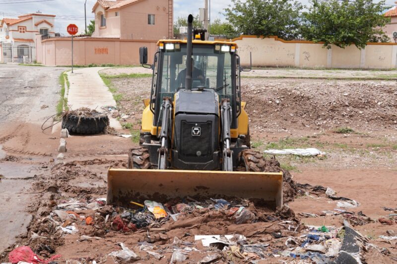 H. Ciudad de Chihuahua, Chih., a 4 de julio de 2025.- El Gobierno Municipal, por medio de las direcciones de Obras Públicas y Mantenimiento Urbano, continúan apoyando en la limpieza de residuos generados por las lluvias de esta semana, donde se reportó el retiro de 182 metros cúbicos de material de arrastre en las colonias: