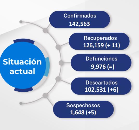 Este martes no se registran defunciones, por lo que la cifra de las personas que han perdido la vida Covid-19 permanece en 9 mil 976.