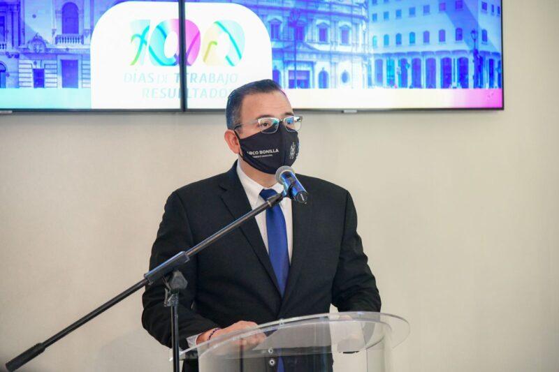 El alcalde Marco Bonilla Mendoza destacó que en los primeros 100 días de trabajo y resultados, el actuar del director de Seguridad Pública Municipal, Julio César Salas y del gran equipo que tiene, lo respaldan dentro de la corporación para hacerle frente a la delincuencia.