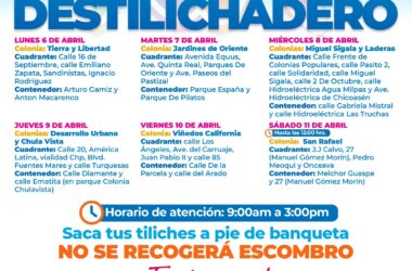 Estará Destilichadero en 8 colonias del 6 al 11 de abril