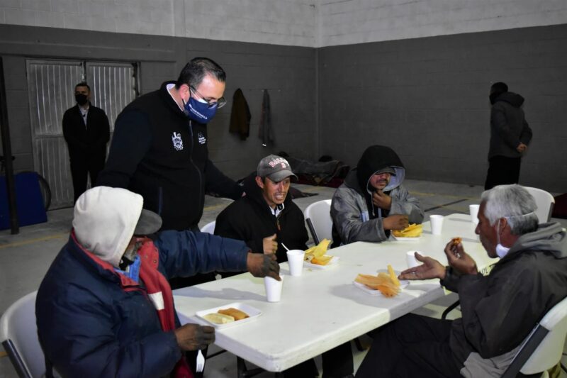 Marco Bonilla, alcalde de Chihuahua y Karina Olivas, presidenta del DIF Municipal y su director Mario García, realizaron un recorrido de inspección y ofrecieron cena caliente a las personas que llegaron a pasar la noche. Además, por parte del DIF, hicieron entrega de ropa térmica y cobijas para ayudar a mitigar el frío.