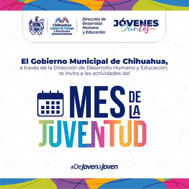 H. Ciudad de Chihuahua, Chih., a 6 de agosto de 2025.- El Gobierno Municipal, a través de la Dirección de Desarrollo Humano y Educación, invita el festival “Jóvenes Juntos”, donde habrá diversas actividades desde el 12 agosto y hasta finalizar mes, con talleres, cine, así como eventos de esparcimiento para jóvenes.