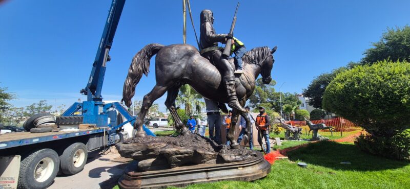 H. Ciudad de Chihuahua, Chih., a 7 de julio de 2025.- El Gobierno Municipal, trabaja en la reubicación y restauración de la estatua del Indio Victorio, símbolo de la resistencia indígena, a la Plaza Tierra de Encuentro, que ahora se encuentra en la intersección de las calles Venustiano Carranza y Juárez, en el Centro Histórico de la ciudad.