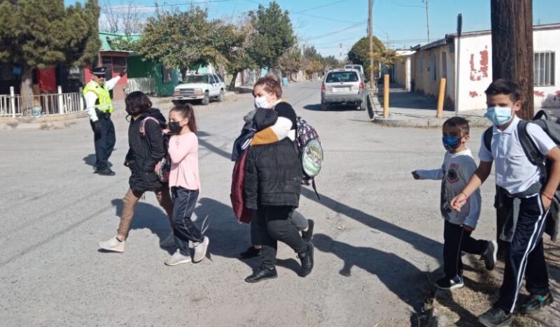 Agentes de la Coordinación General de Seguridad Vial continúan brindando vigilancia al exterior de las escuelas durante la entrada y salida de los estudiantes, con el fin de brindar seguridad y agilizar el tráfico en estas zonas.