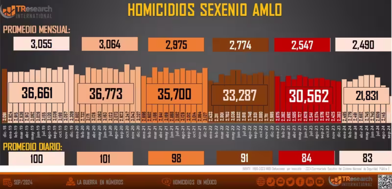 El final del mandato de López Obrador está marcado por un panorama mixto: la reducción de homicidios en comparación con el pico de 2020, pero una constante inseguridad que deja poco margen para el optimismo en el corto plazo.