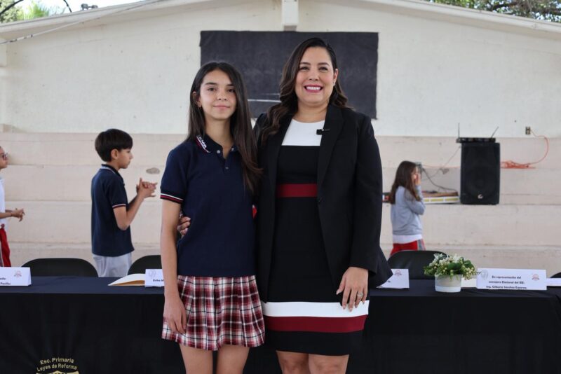 Chihuahua, Chih.- Como parte de las actividades desarrolladas por el Congreso del Estado en el marco del Día de la Niñez, la diputada local por el Distrito 15, Joss Vega, visitó la Escuela Primaria Leyes de Reforma con el objetivo de reconocer a Erika Marian Reza, Diputada Infantil 2026, así como para hacer la entrega simbólica del apoyo económico de $82,000 destinados para las mejoras del plantel.