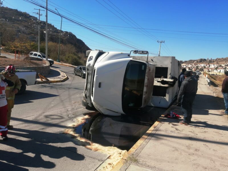 Lo anterior, luego de que el pesado vehículo iba en descenso por la calle Centauro del Norte, cuando el conductor se percató de una falla en los frenos, ante esto y tras maniobrar para evitar un accidente con algún otro vehículo, el camión terminó por volcar sobre la avenida Teófilo Borunda.